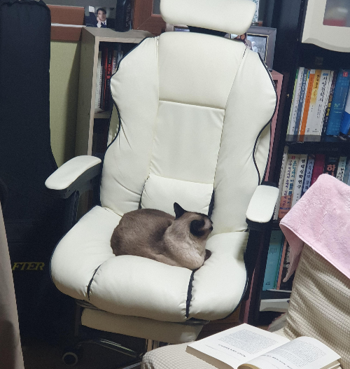 나의 경우에는 의자와 내 취침용 쿠션을 아이들과 공유를 하는 처지인데 처음에는 귀찮기도 하고 내 방에 못 들어오게도 해보았지만 결국에는 아이들에게 지고 말았지요.