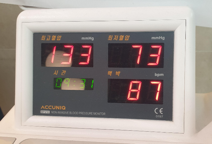 피검사, 소변검사 이상이 없고 혈압도 거의 정상수치로 확인됨.
